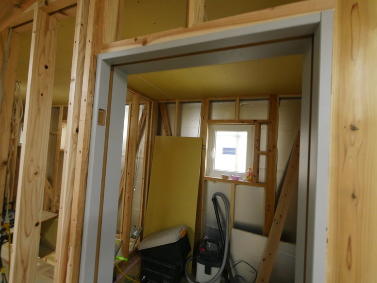 大工工事 ドア枠取付 クールなグレー色のドア枠 ソトダン白水ヶ丘 プレミアムな建売住宅