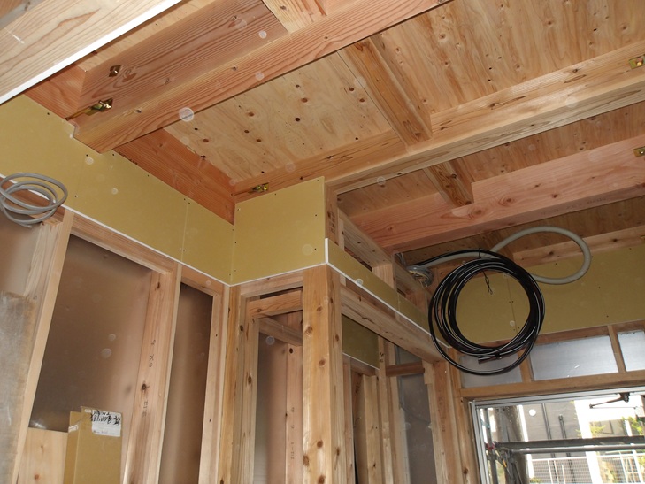 電気配線 大工工事中 壁 天井 博多南駅まで徒歩19分 住み心地いい外断熱のプレミアムな建売住宅