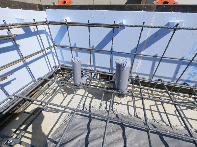 基礎の断熱材を施工する際に給排水の設備配管を基礎配筋内部に施工します。