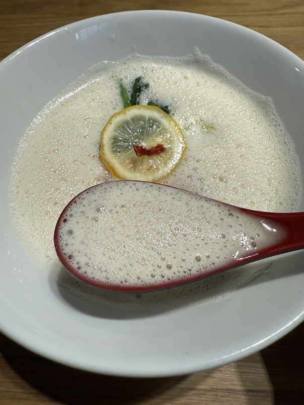 が、鶏白湯を心行くまで楽しむためには、スープを心行くまで飲みたい衝動を抑えて、レンゲで2杯までにとどめないといけません!!
