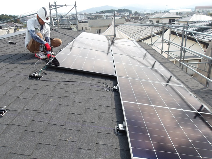 太陽光発電 パネル設置と配線工事 那珂川市リフォームから新築へ 注文住宅 福建住宅株式会社