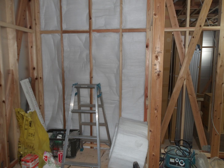 隣接する部屋にも音が響かないようにポリウールを施工します。