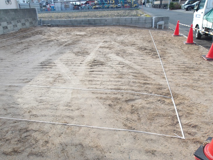 地縄張り 敷地に家の形、大きさ、配置を印す 那珂川市つながる家 注文住宅 福建住宅株式会社