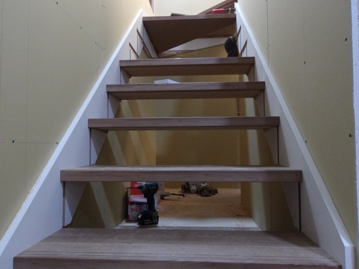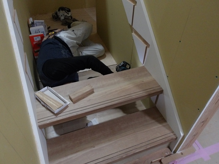大工工事 階段取り付け 側板から踏み板 那珂川市リフォームから新築へ 注文住宅