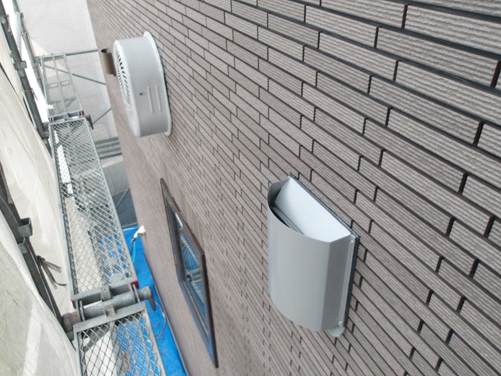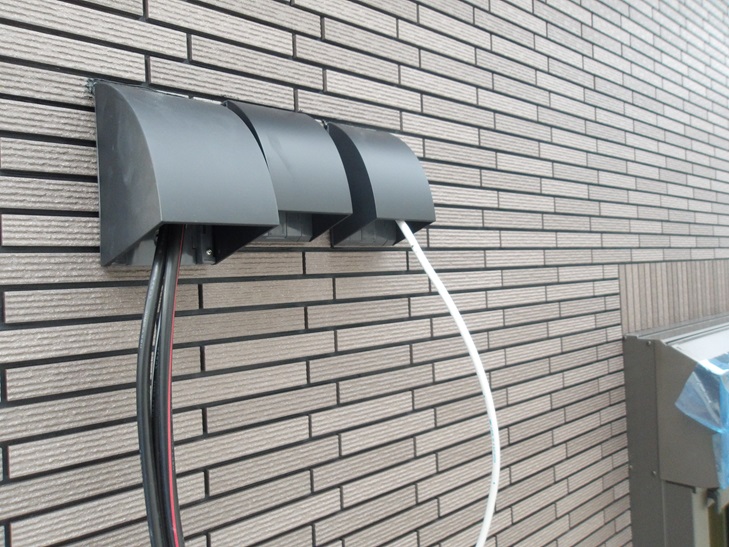タイル張り工事が終わり外部の電気仕上げ工事です。