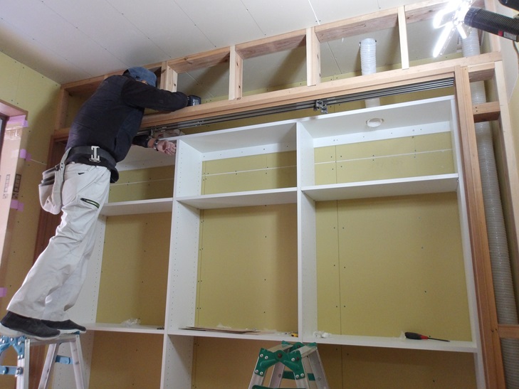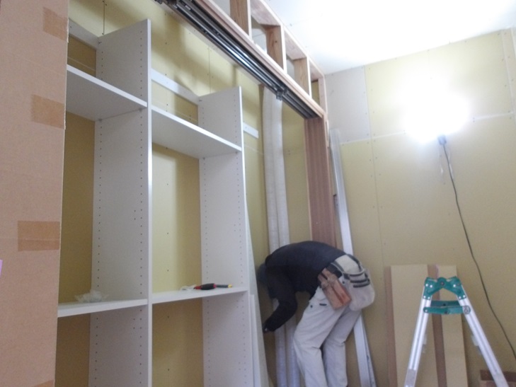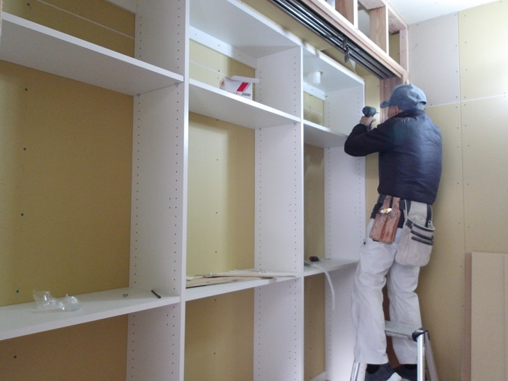 このように収納をつくる時は、何を収納するのかをお客様としっかり打ち合わせをしてどのように棚を取り付けるかをお決めして工事します。