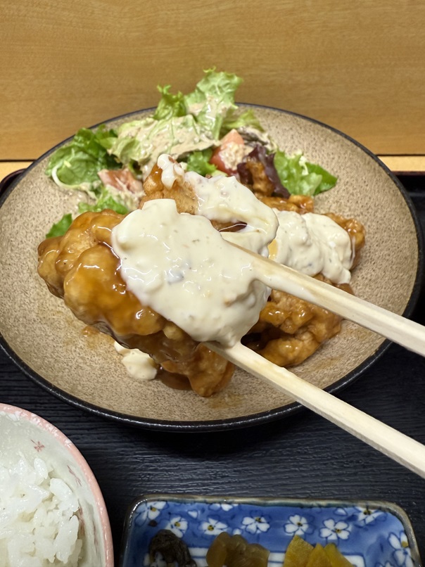 甘酢&タルタルが濃いめの味付けでご飯のお供に最高です。