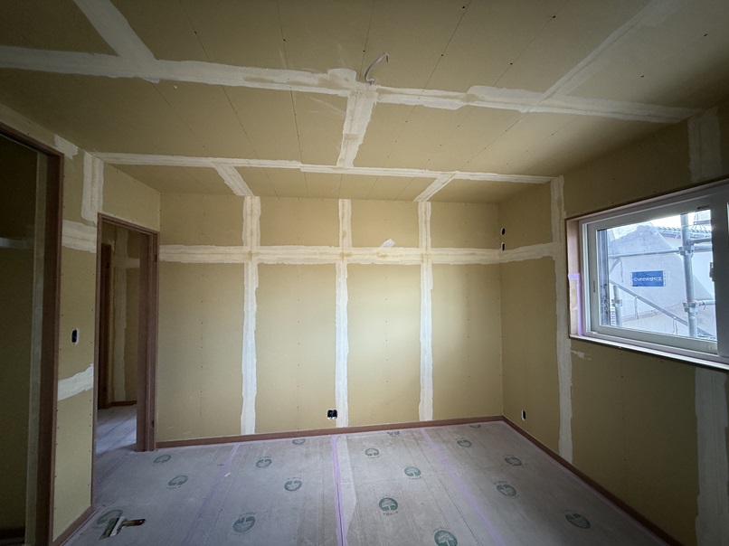 クロス工事 2回目のパテ処理 那珂川市リフォームから新築へ 注文住宅 外断熱工法 福建住宅株式会社