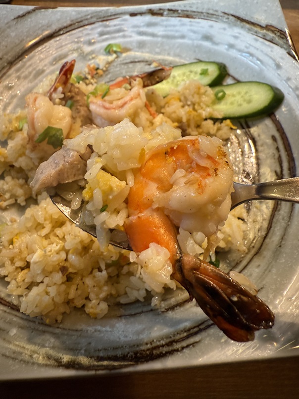 この日は、まだ新年なので縁起良くエビチャーハンにしました。