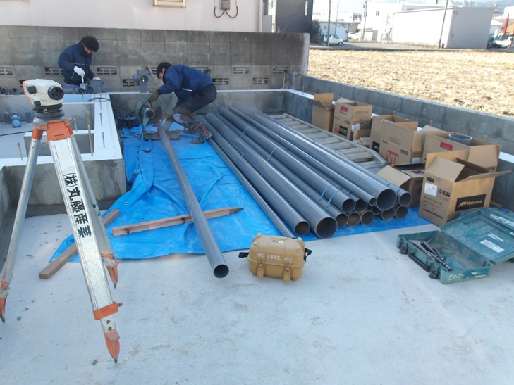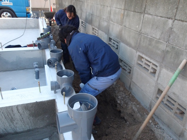 設備配管工事 基礎周り 水道 下水道 那珂川市つながる家 福建住宅株式会社