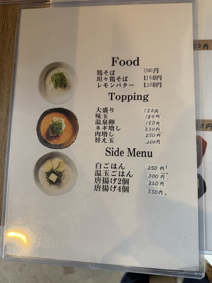 鶏そば 1,080円を注文しました。