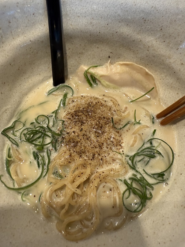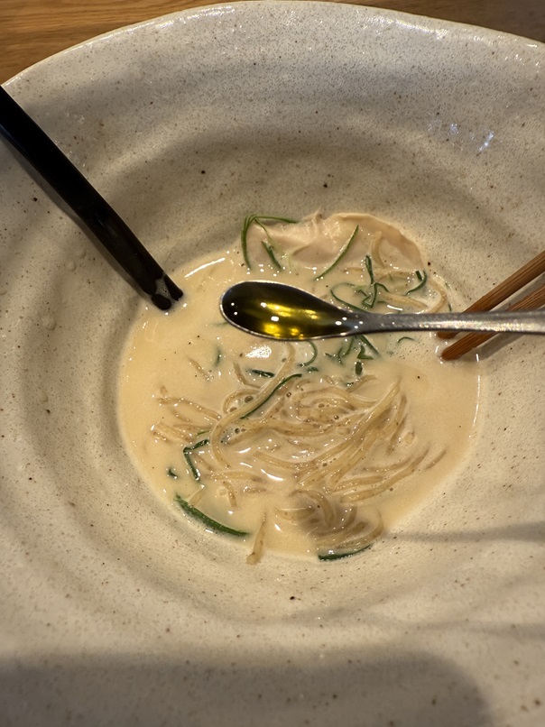 白トリフオイルは少し入れただけでは味変しなかったので鶏白湯の味を壊さない程度に味見をしながら何度も投入しました。