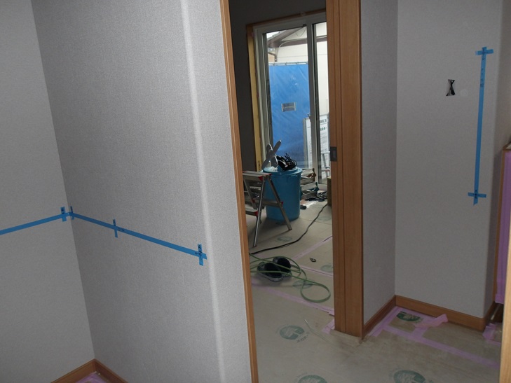 クロス貼り後に手すりを取り付ける位置にマーキングしました。