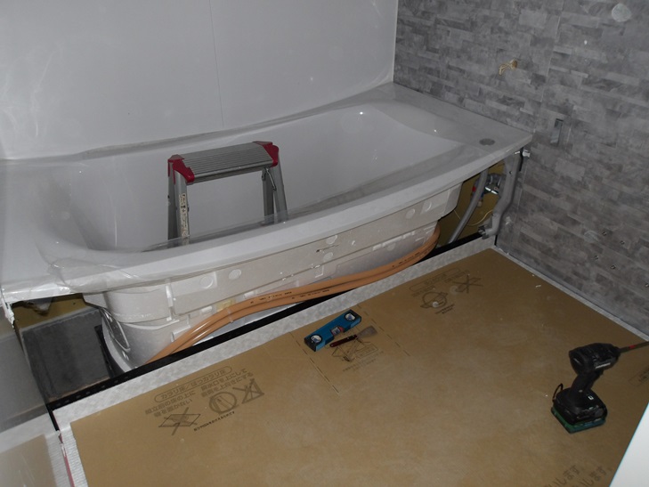 浴槽を設置後壁の取り付けです。