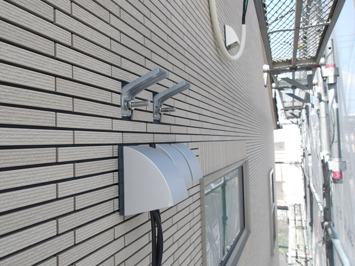 工事用足場を取り外しますので、その前に外部電気工事の最終確認です。
