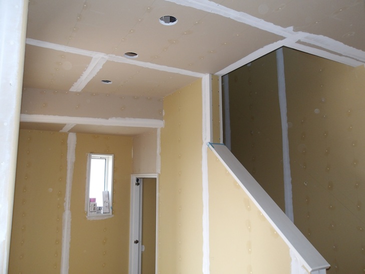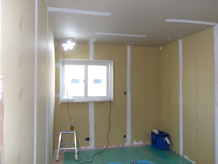 クロス工事 凸凹均しのパテ処理 那珂川市つながる家 外断熱工法 注文住宅 福建住宅株式会社