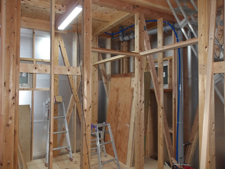 外部は、外断熱の工事が終わり室内の大工工事です。