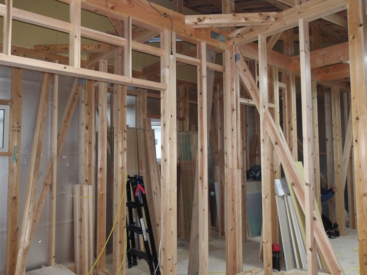 大工工事中の室内は、地元福岡県産の木の香りがあふれていて癒しの空間です。
