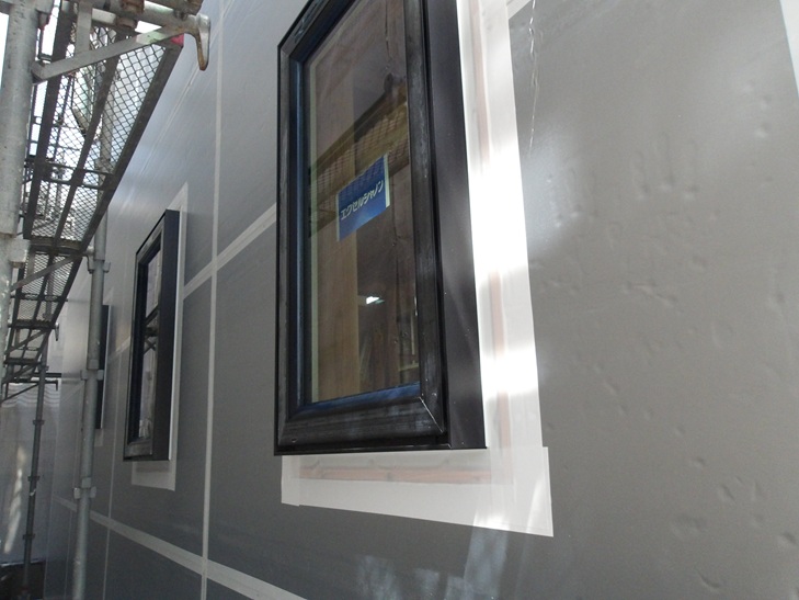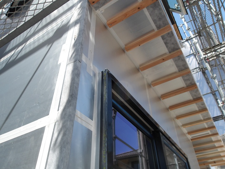 防水性能がある断熱材なので、このように防水テープを貼ることで壁の2次防水となるのです。