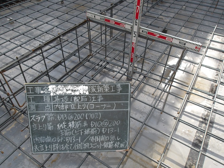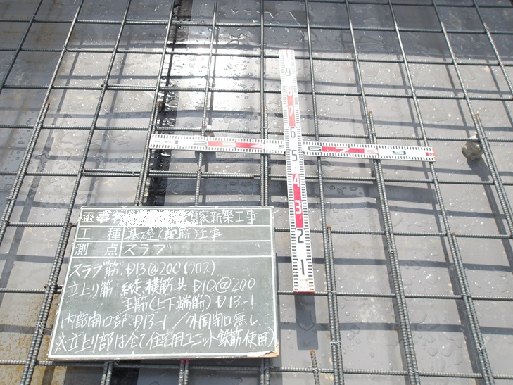 下と上の配筋は直径13mmの鉄筋、内部の配筋は直径10mmの鉄筋です。