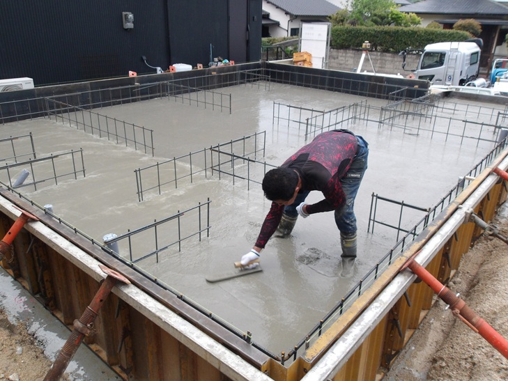 最後に基礎全体のコンクリートをコテで均して仕上げます。