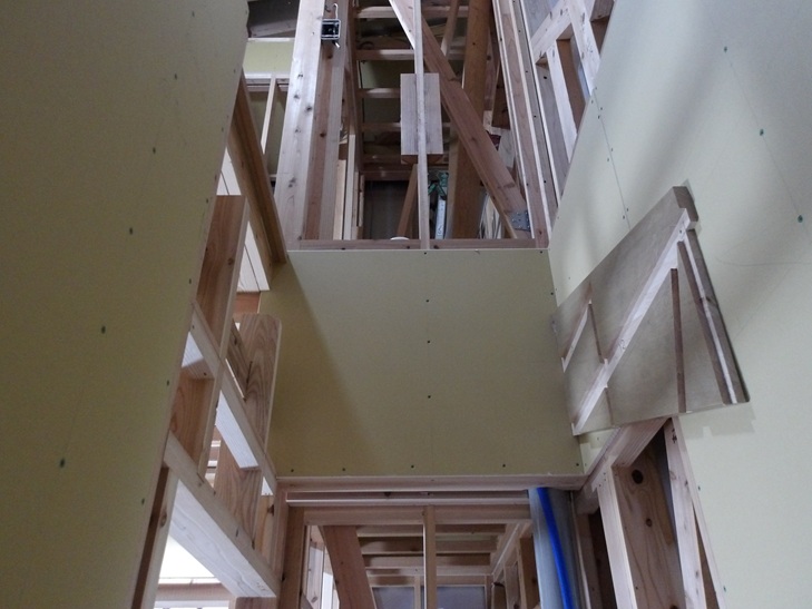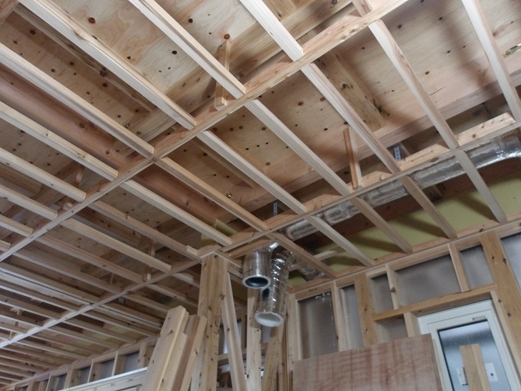 ファイアーストップの工事が終わり天井を作るための下地木材の取り付けです。
