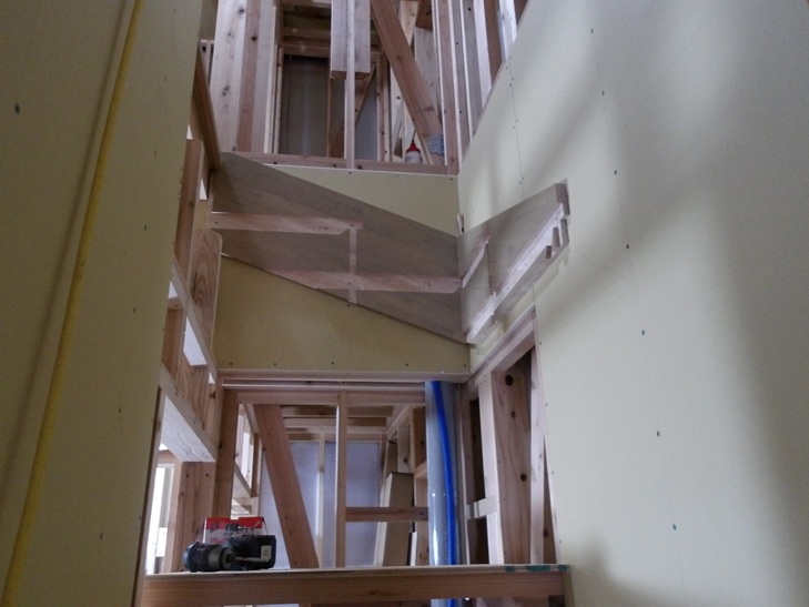 こうして大工さんが階段をつくります。